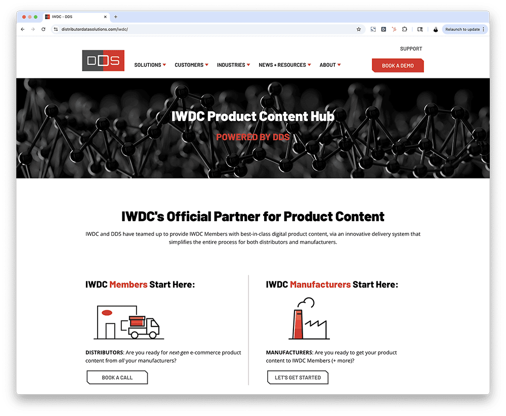 + For ManufacturersDDS’ syndication platform makes it easy to upload, view, edit and deliver your product data and digital assets to your distributors through a single source, at scale. Popular features: + Data syndication + 450+ Distributor integrations + Distributor approval + AI enrichment + Data health analytics |