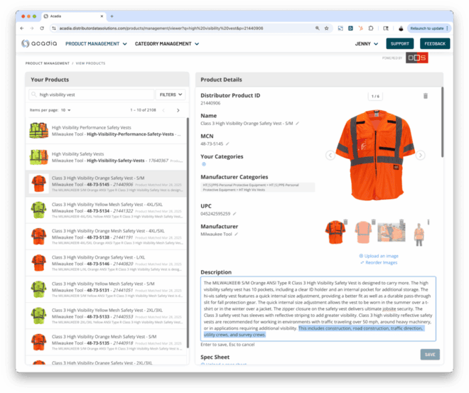 Product Data + ManagementDDS’ product management platform has all the tools you need to populate your e-commerce, PIM and ERP with high-quality product data, plus automation to make your team 5× more productive. Popular features: + 12.5+ million SKUs + Real-time updates + Product view/edit/create + AI enrichment + 450+ pre-built integrations |